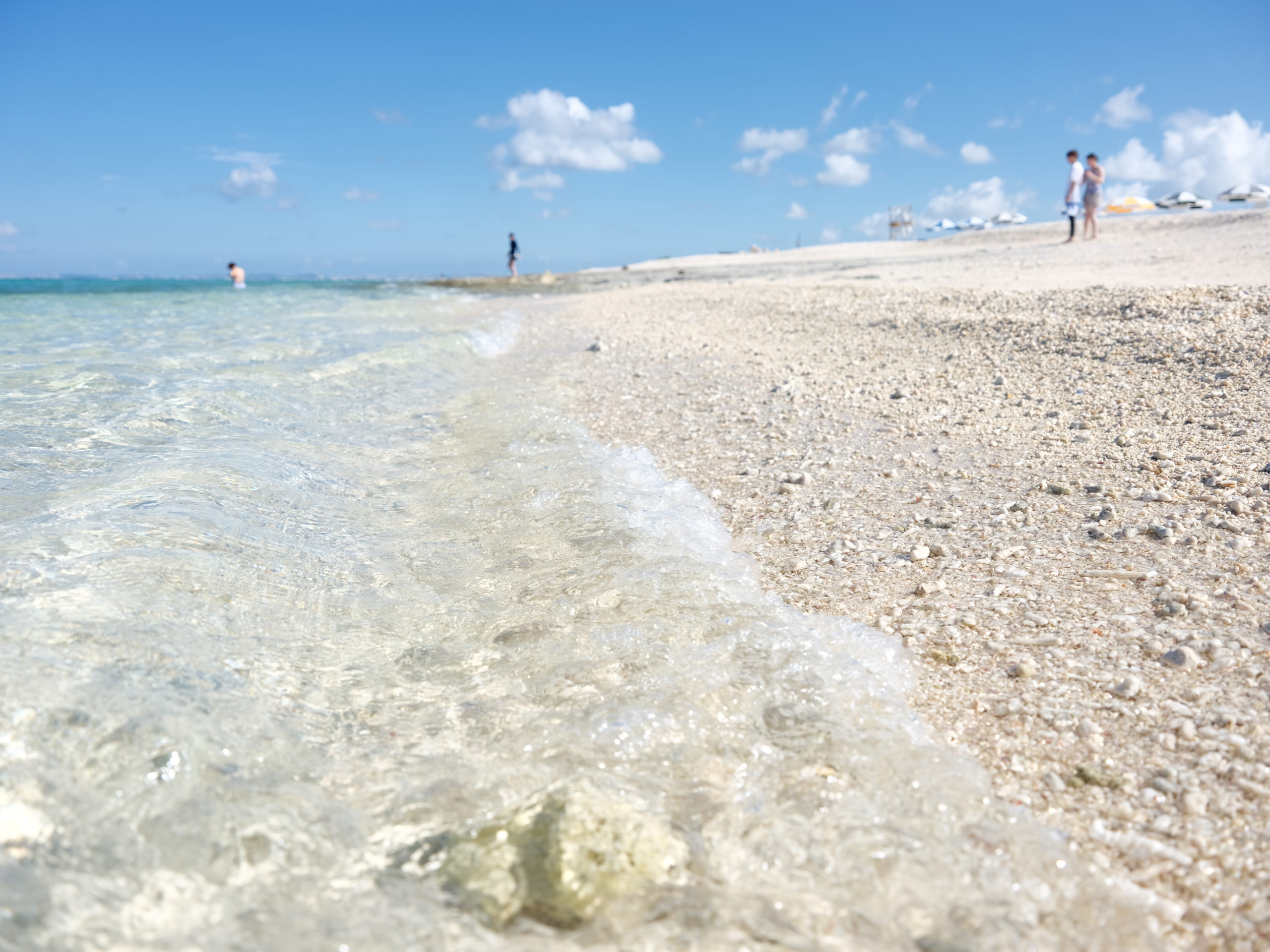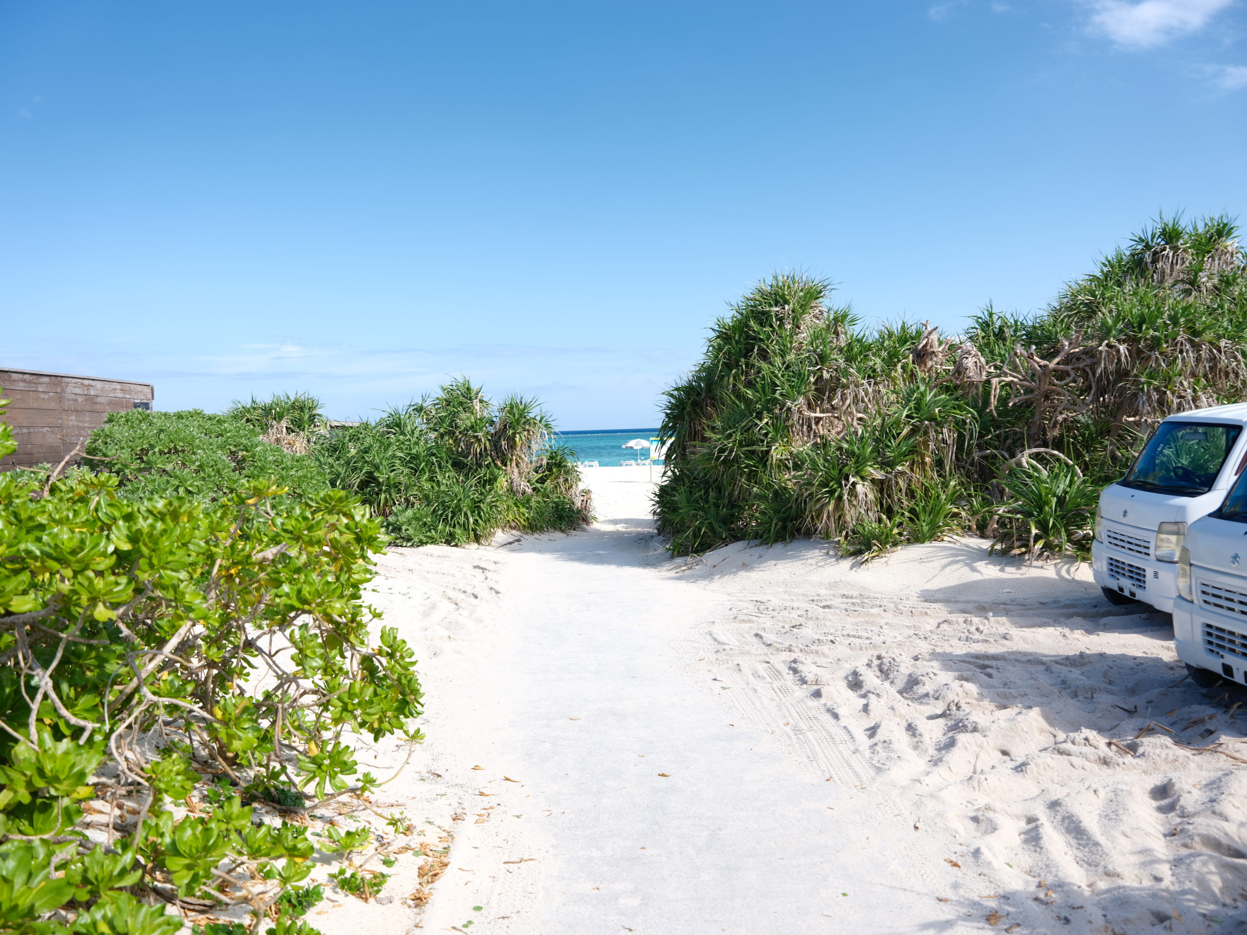 太陽が真上にあるより、斜めから差し込んでいる側のビーチ方がきれいに見えそうなので、