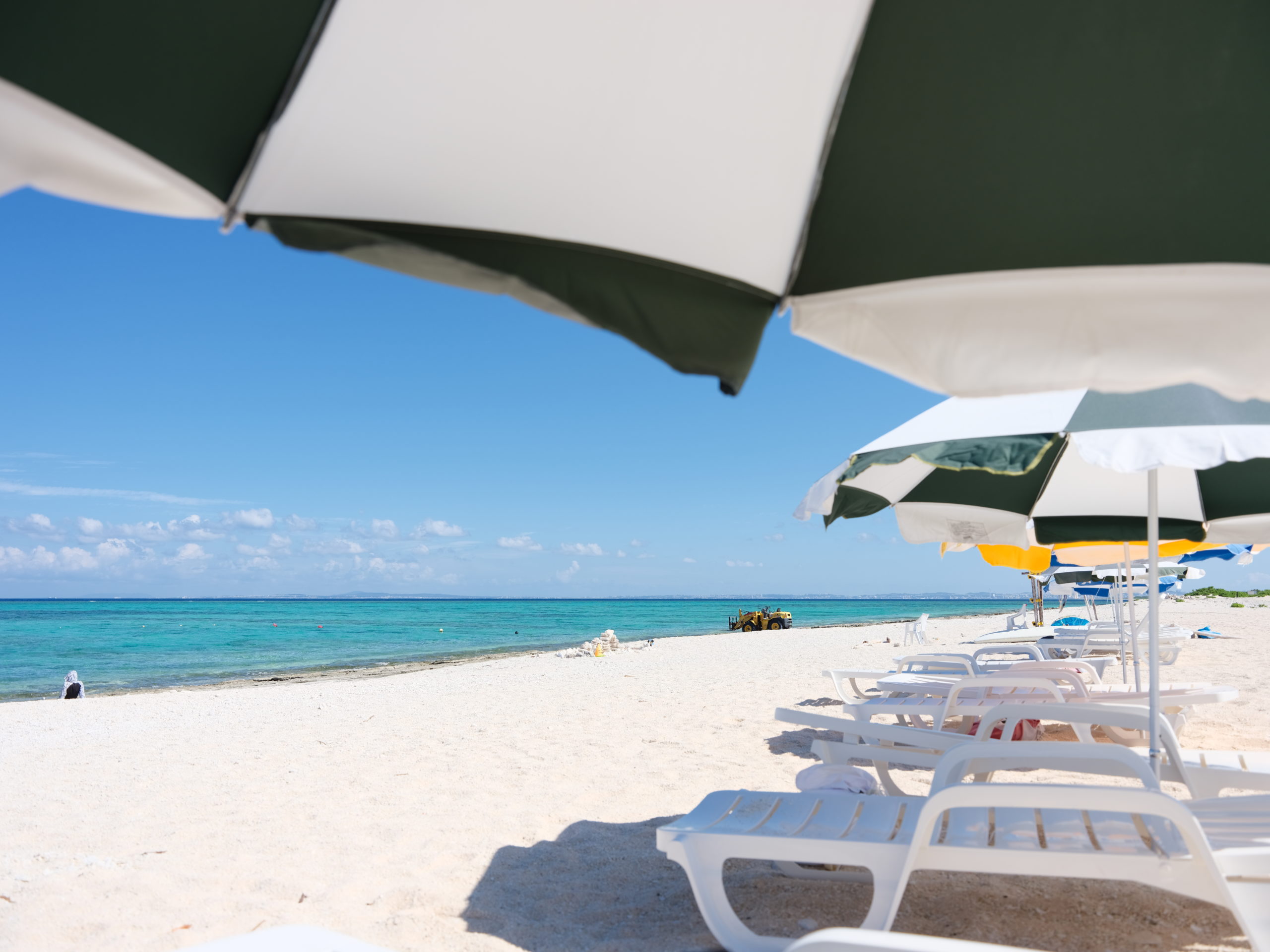 ビーチにはパラソルとチェアを用意してくださり、だれでも無料で使用できる。